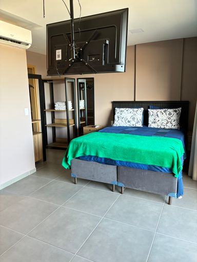 Os apartamentos studio, com metragens entre 27,00m² e 42,26m², possuem ambientes bem planejados, incluindo varanda, sala confortável, WC social e cozinha, oferecendo praticidade para o dia a dia e excelente potencial para locação por temporada.