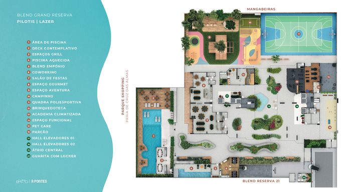 Mais de 3.500 m² dedicados ao lazer e convivência.