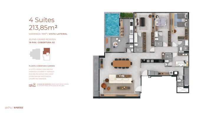 2 ou 3 vagas de garagem por apartamento