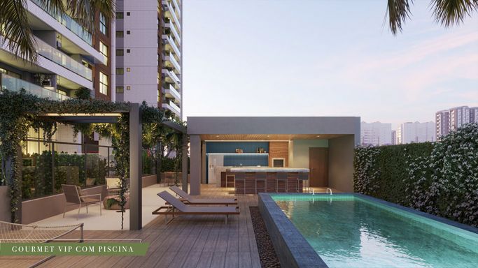 Condomínio com área de lazer completa, incluindo piscina adulto e infantil, espaço gourmet, salão de festas, academia equipada, brinquedoteca, playground, miniquadra, sports bar, pet place e minimarket.