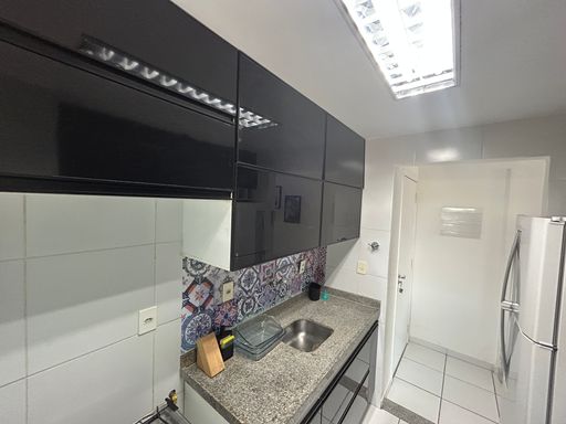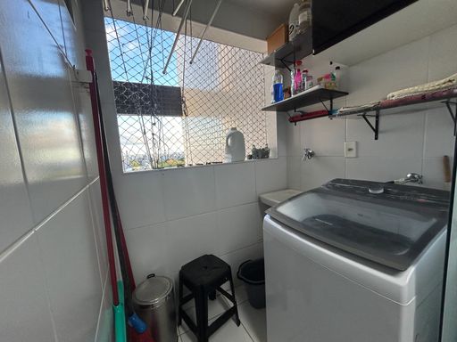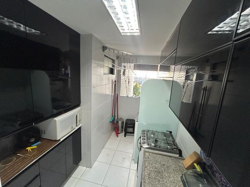 Logística Doméstica: Cozinha funcional com área de serviço e banheiro social.