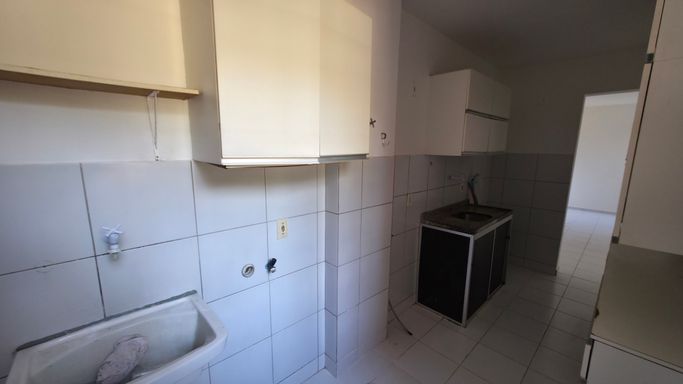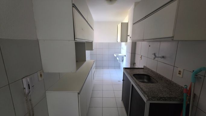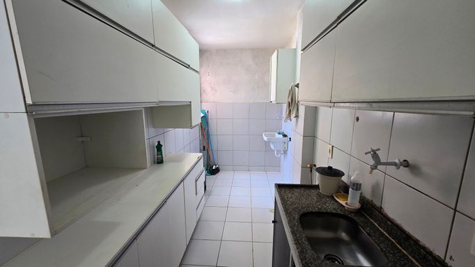 Cozinha com armários e área de serviço