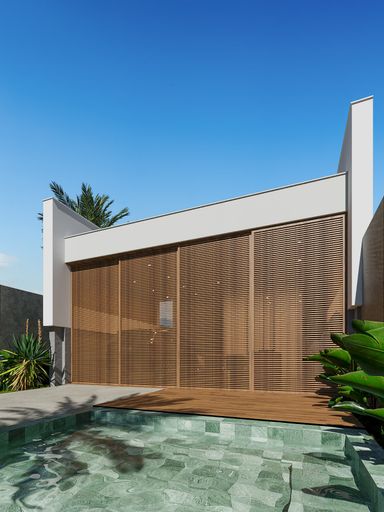Piscina com deck em madeira